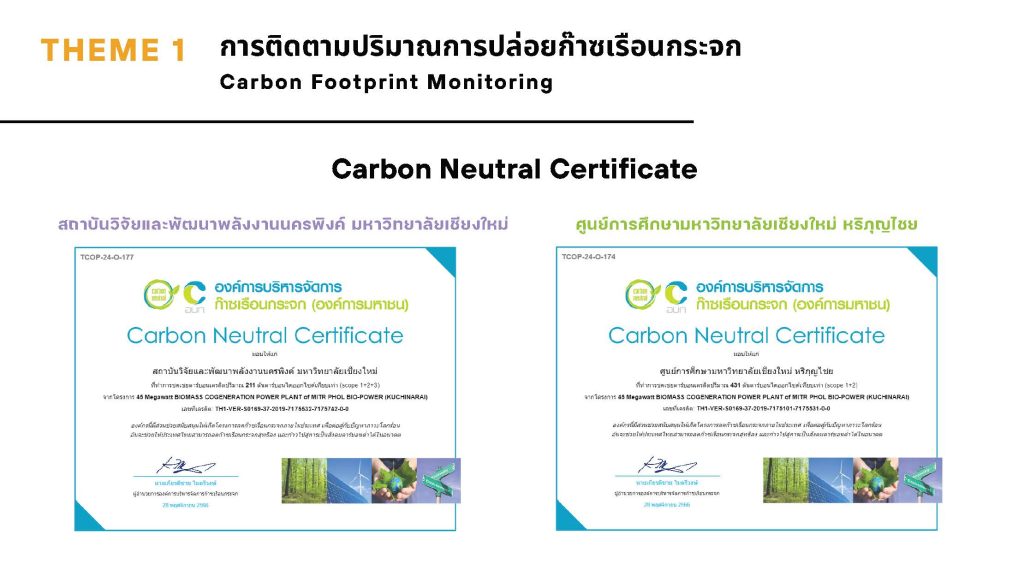 นอกจากนี้ มช. ยังได้รับการรับรอง Carbon Neutral Certificate ได้แก่