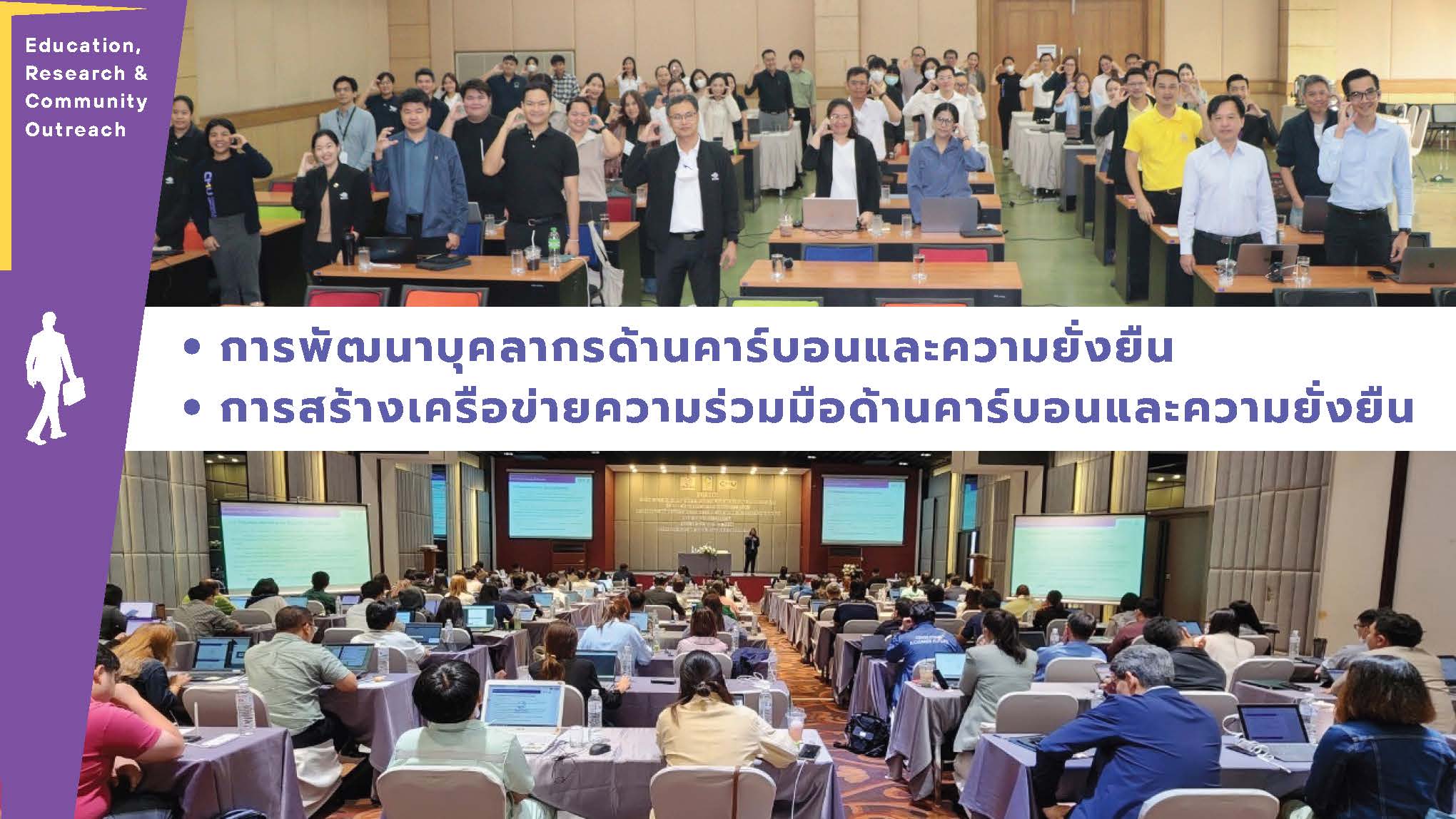 นอกจากนี้ยังมุ่งเน้นการพัฒนาบุคลากรด้านคาร์บอนและความยั่งยืน พร้อมสร้างเครือข่ายความร่วมมือด้าน Climate Action ระหว่างสถาบันการศึกษา ภาครัฐ ภาคธุรกิจ และชุมชน
