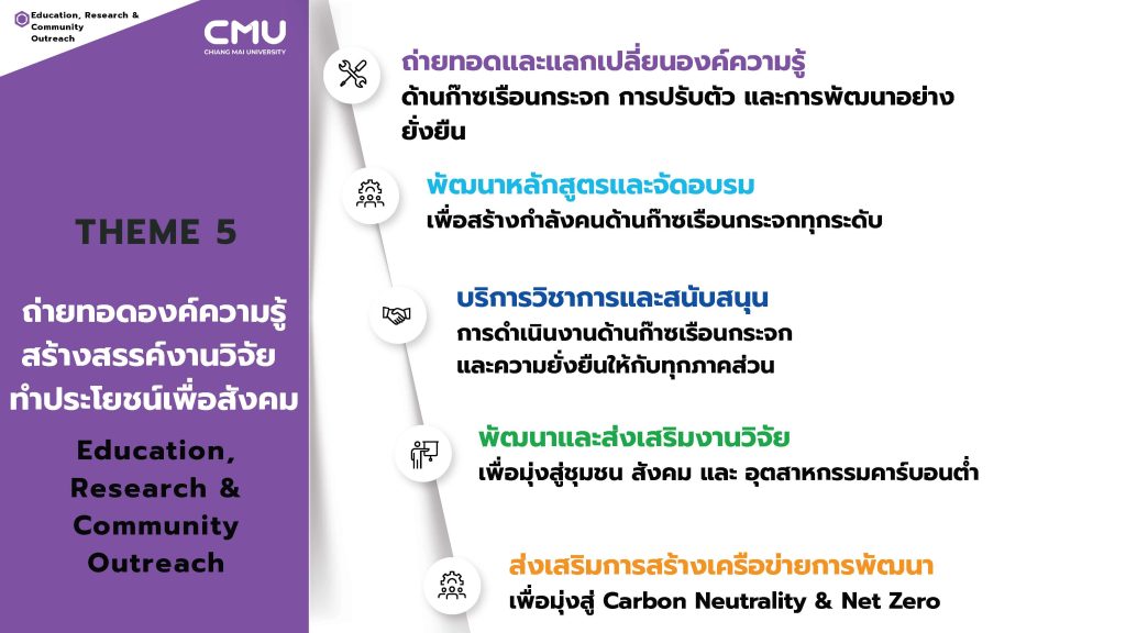 5. Theme 5: ถ่ายทอดองค์ความรู้ สร้างสรรค์งานวิจัย ทำประโยชน์เพื่อสังคม (Education, Research & Community Outreach)