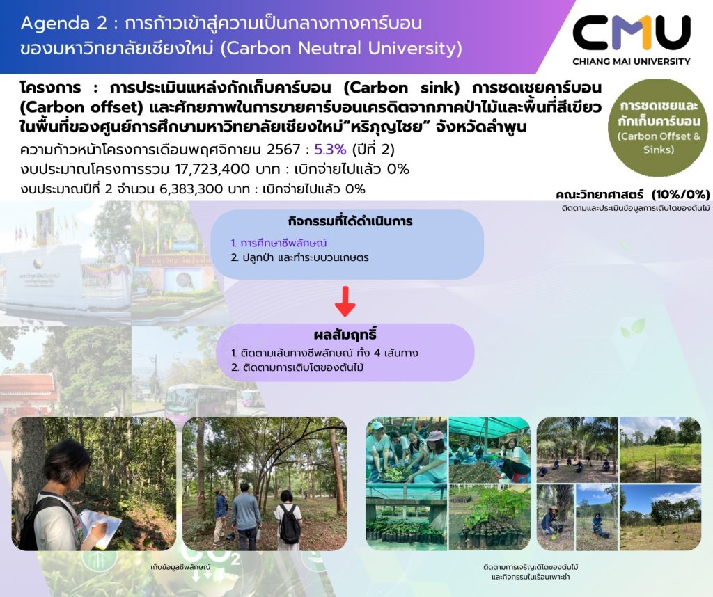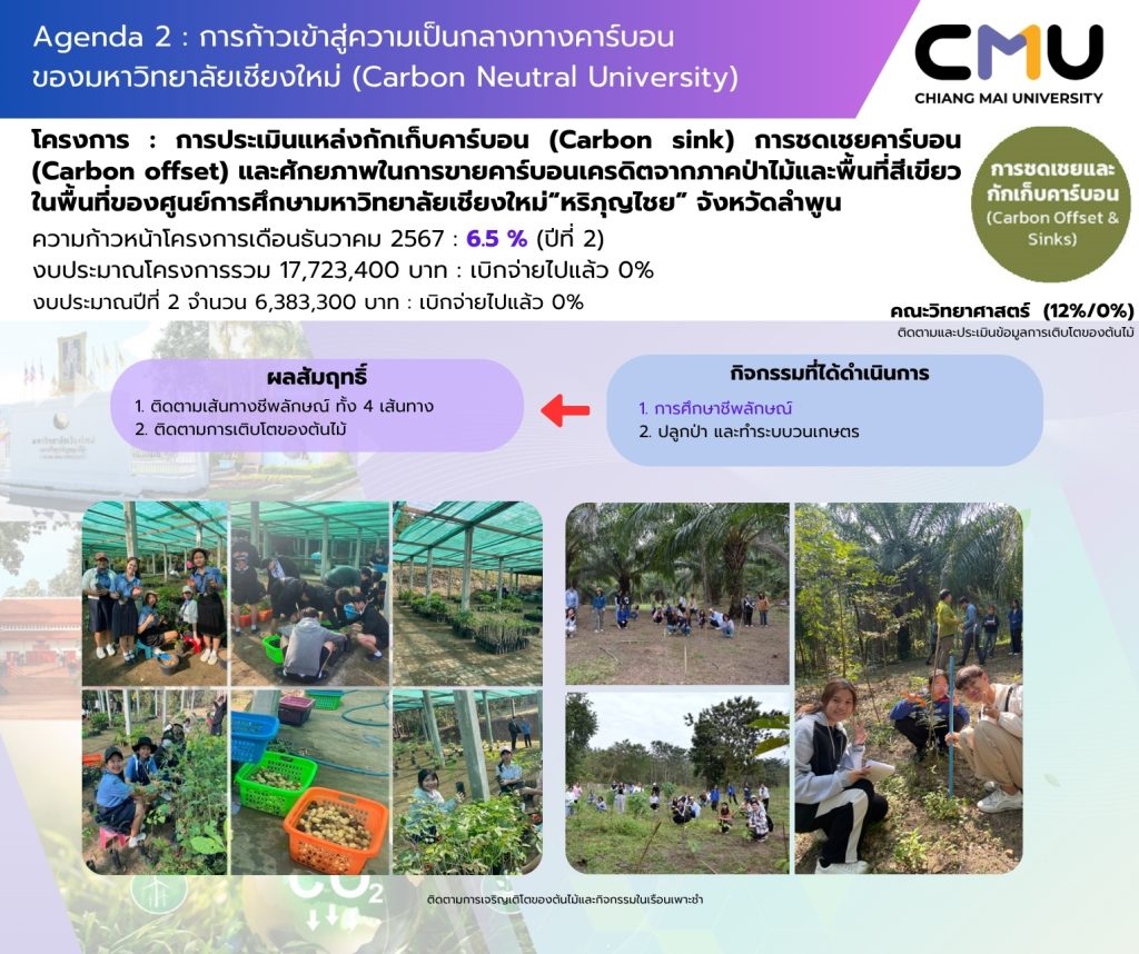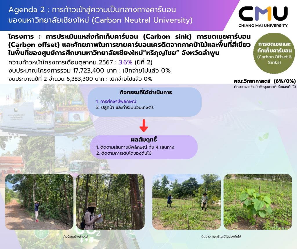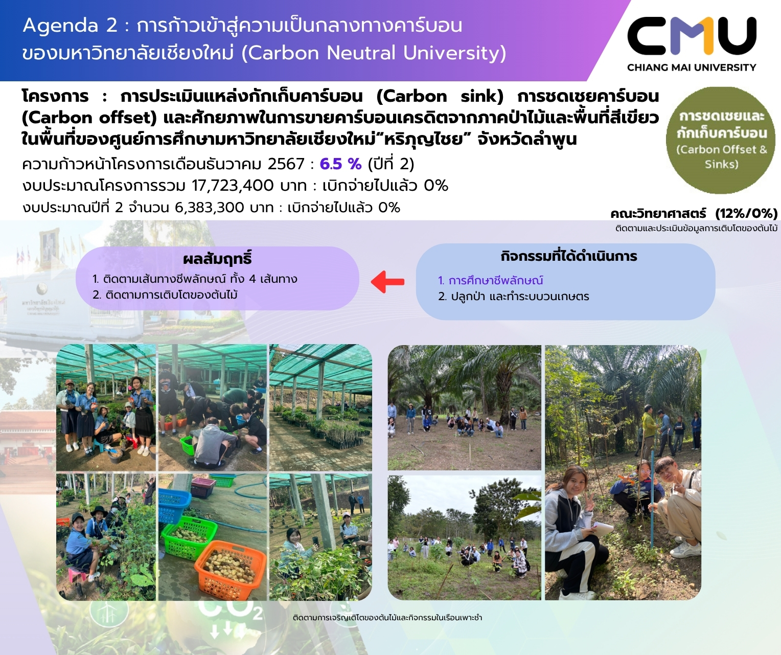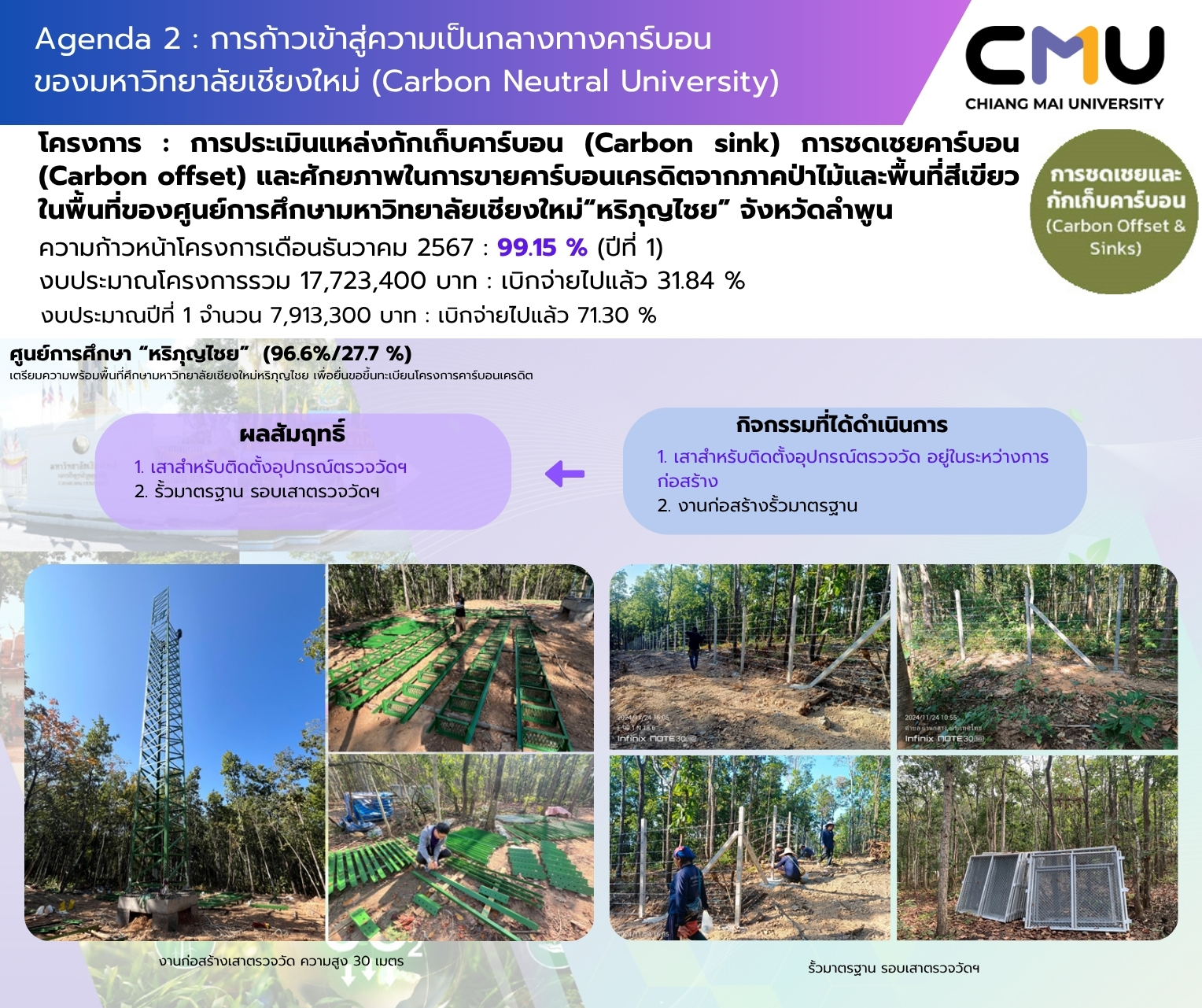 การประเมินแหล่งกักเก็บคาร์บอน (Carbon sink) การชดเชยคาร์บอน (Carbon offset) และศักยภาพในการขายคาร์บอนเครดิตจากภาคป่าไม้และพื้นที่สีเขียวในพื้นที่ของศูนย์การศึกษามหาวิทยาลัยเชียงใหม่“หริภุญไชย” จังหวัดลำพูน ปีที่ 2