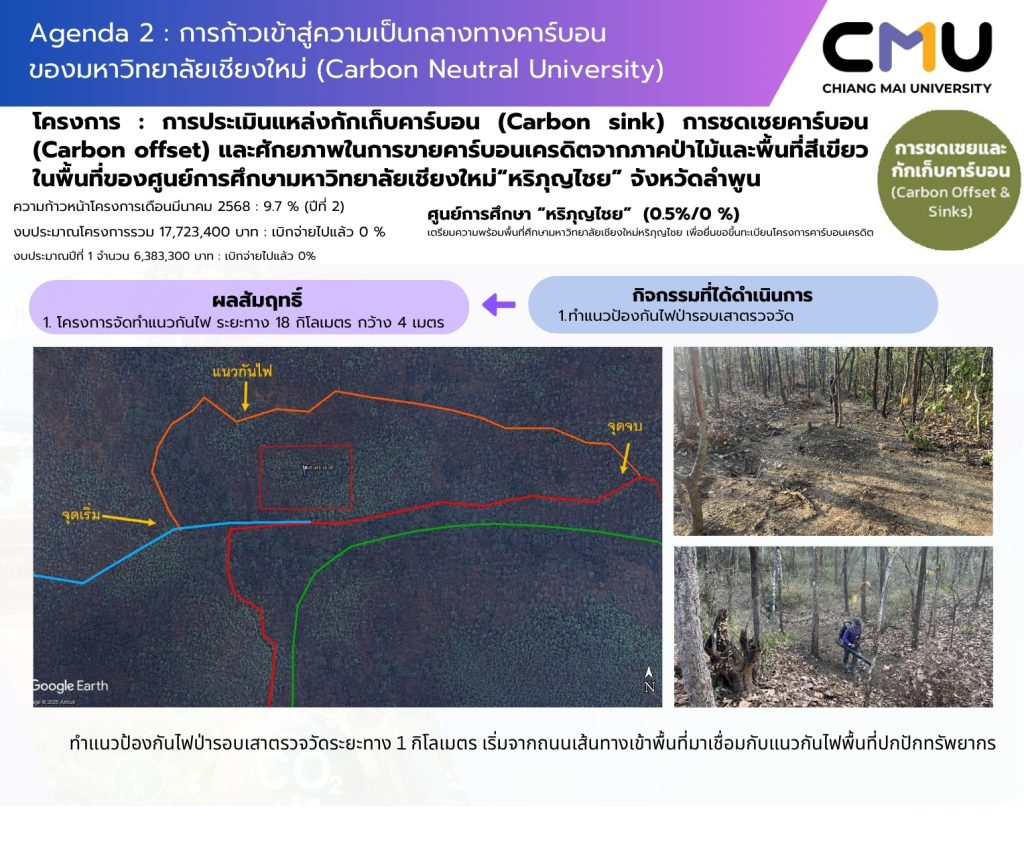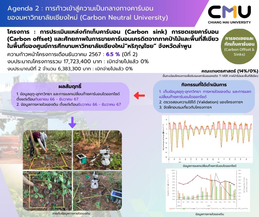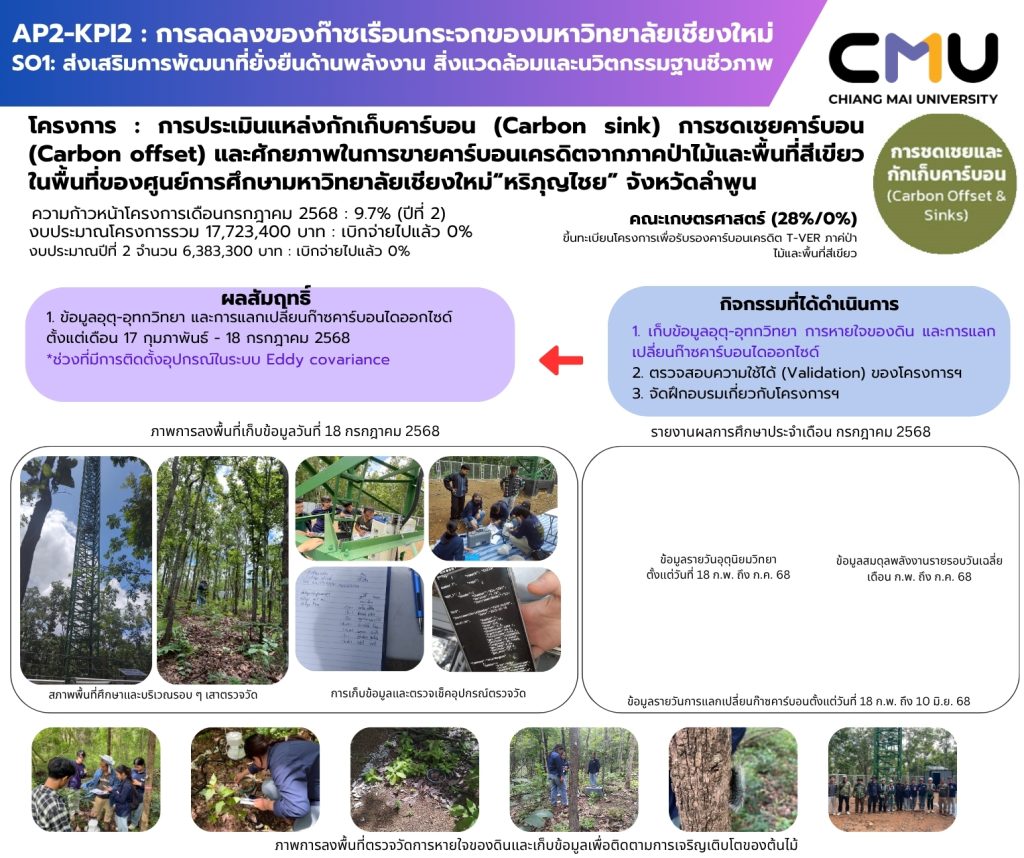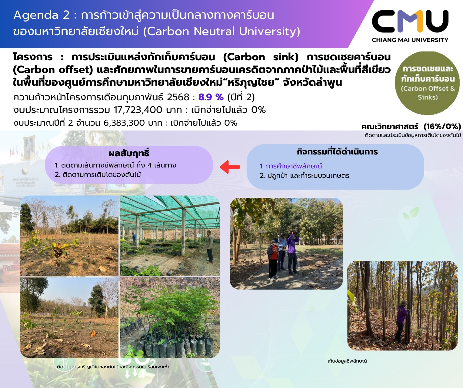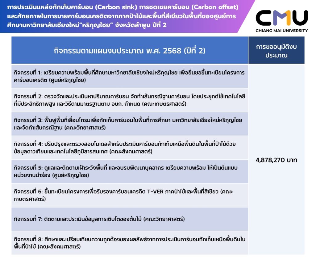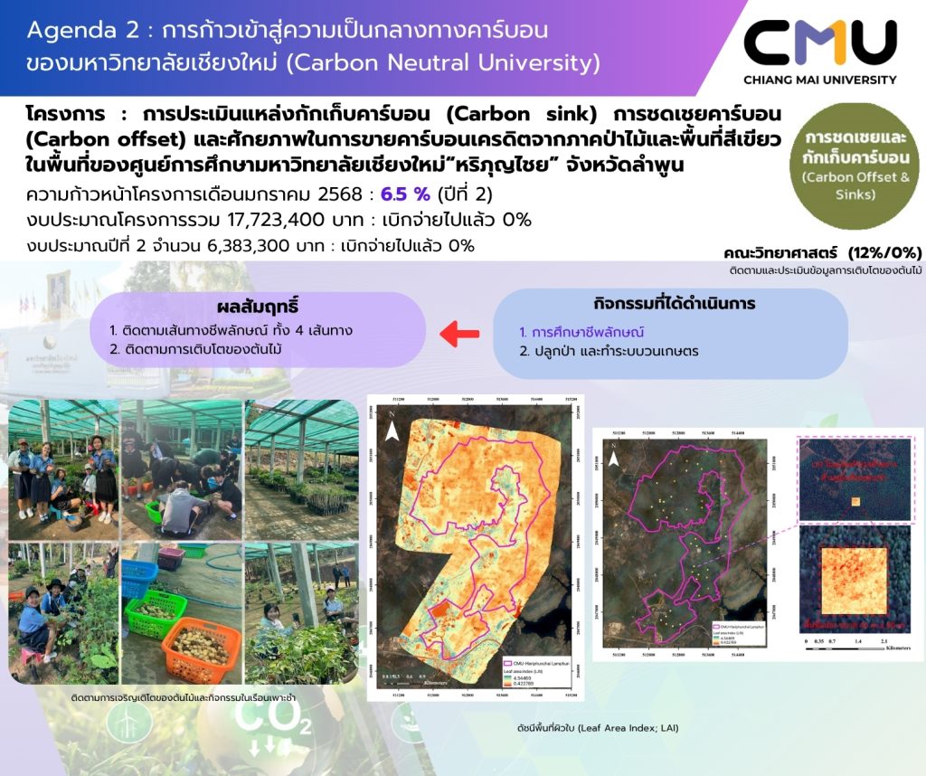 การประเมินแหล่งกักเก็บคาร์บอน (Carbon sink) การชดเชยคาร์บอน (Carbon offset) และศักยภาพในการขายคาร์บอนเครดิตจากภาคป่าไม้และพื้นที่สีเขียวในพื้นที่ของศูนย์การศึกษามหาวิทยาลัยเชียงใหม่“หริภุญไชย” จังหวัดลำพูน ปีที่ 2