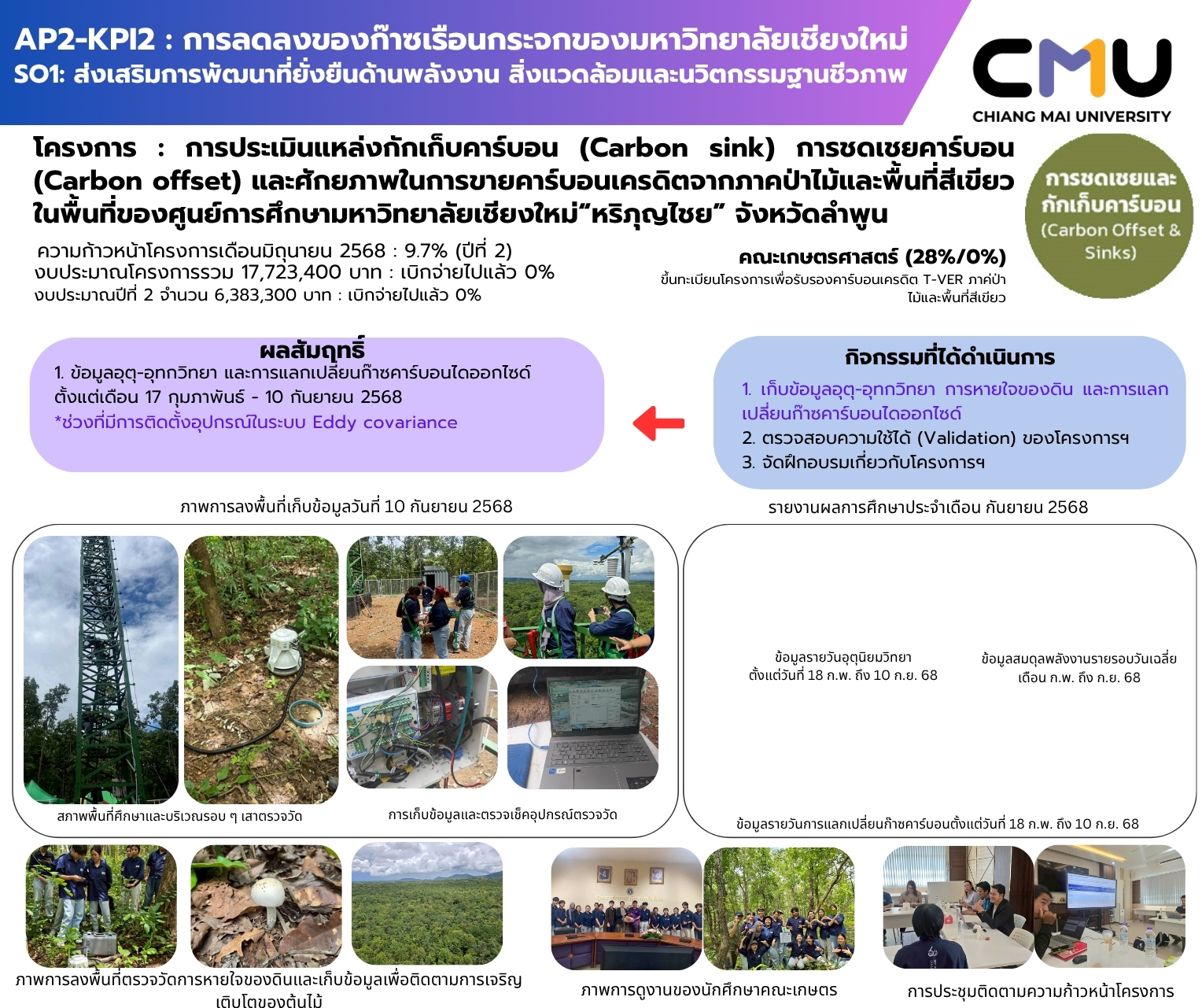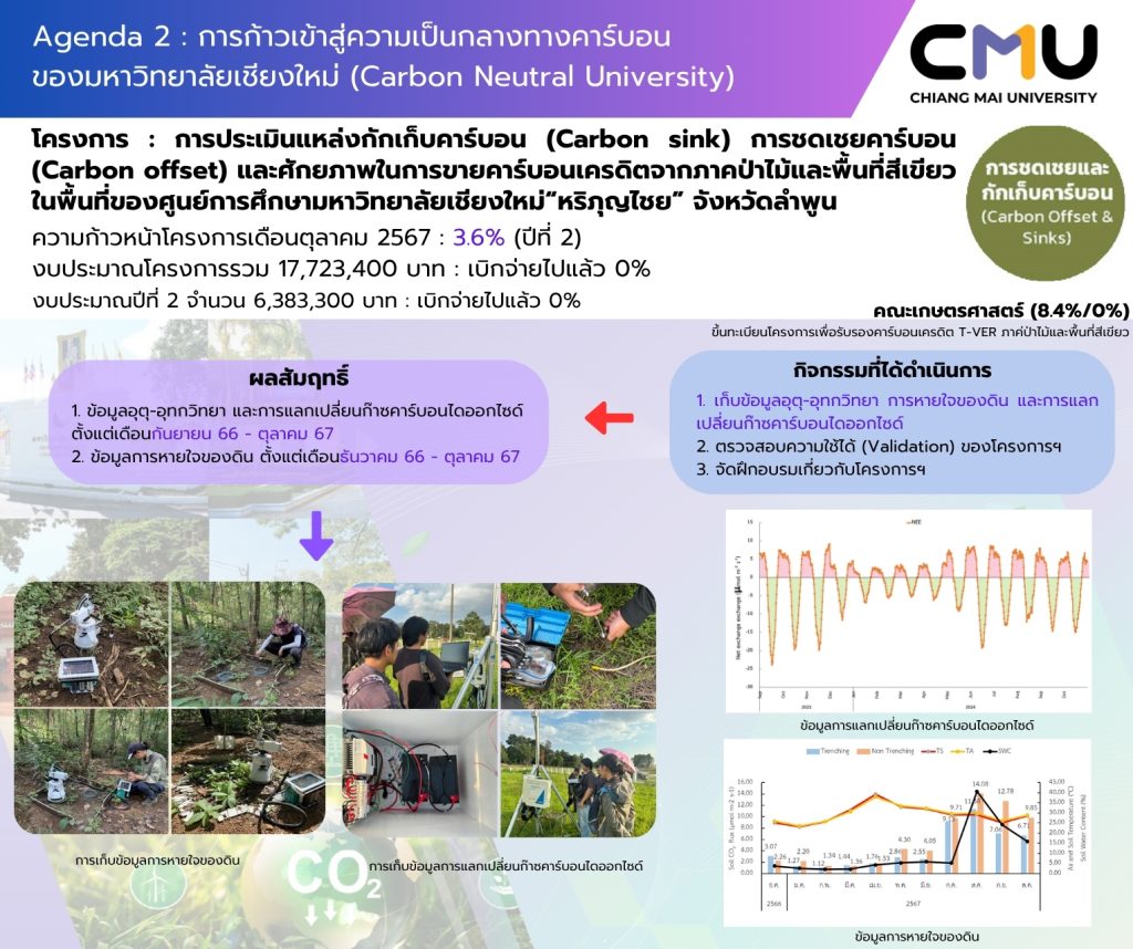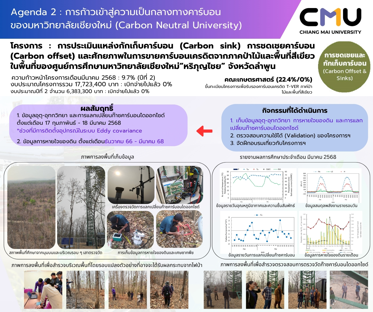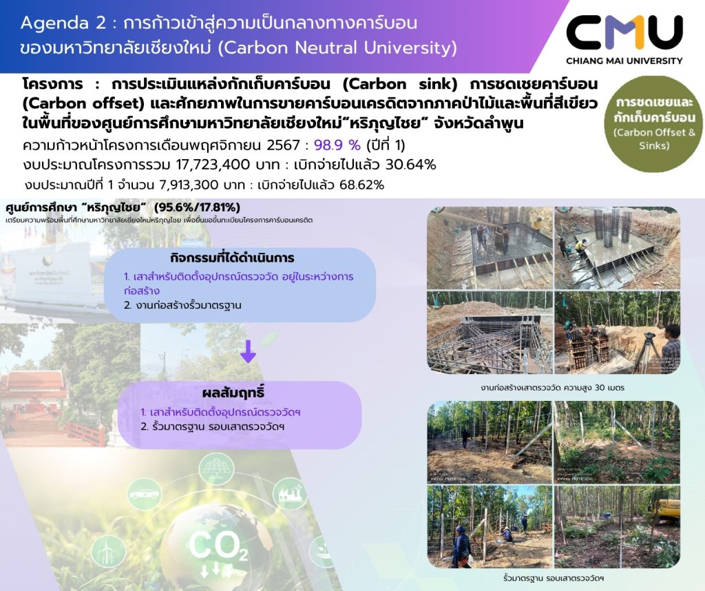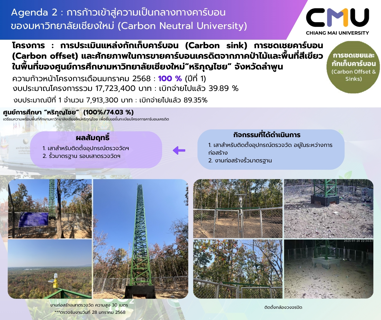 การประเมินแหล่งกักเก็บคาร์บอน (Carbon sink) การชดเชยคาร์บอน (Carbon offset) และศักยภาพในการขายคาร์บอนเครดิตจากภาคป่าไม้และพื้นที่สีเขียวในพื้นที่ของศูนย์การศึกษามหาวิทยาลัยเชียงใหม่“หริภุญไชย” จังหวัดลำพูน ปีที่ 2