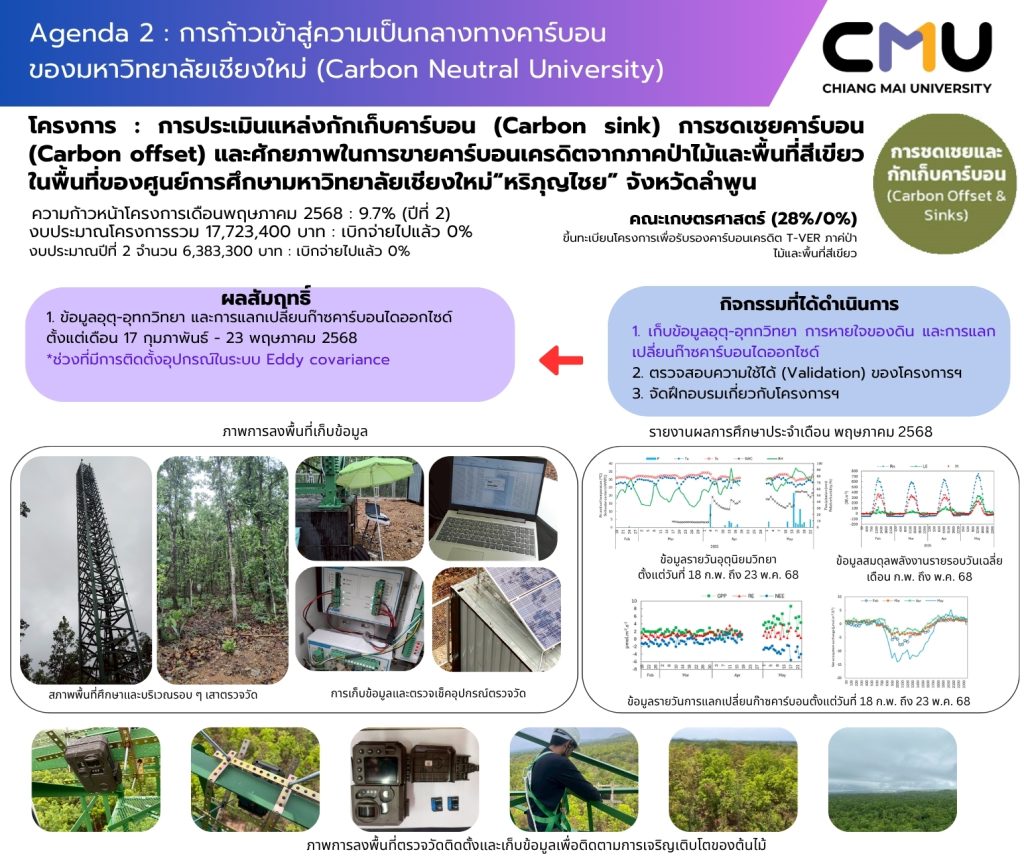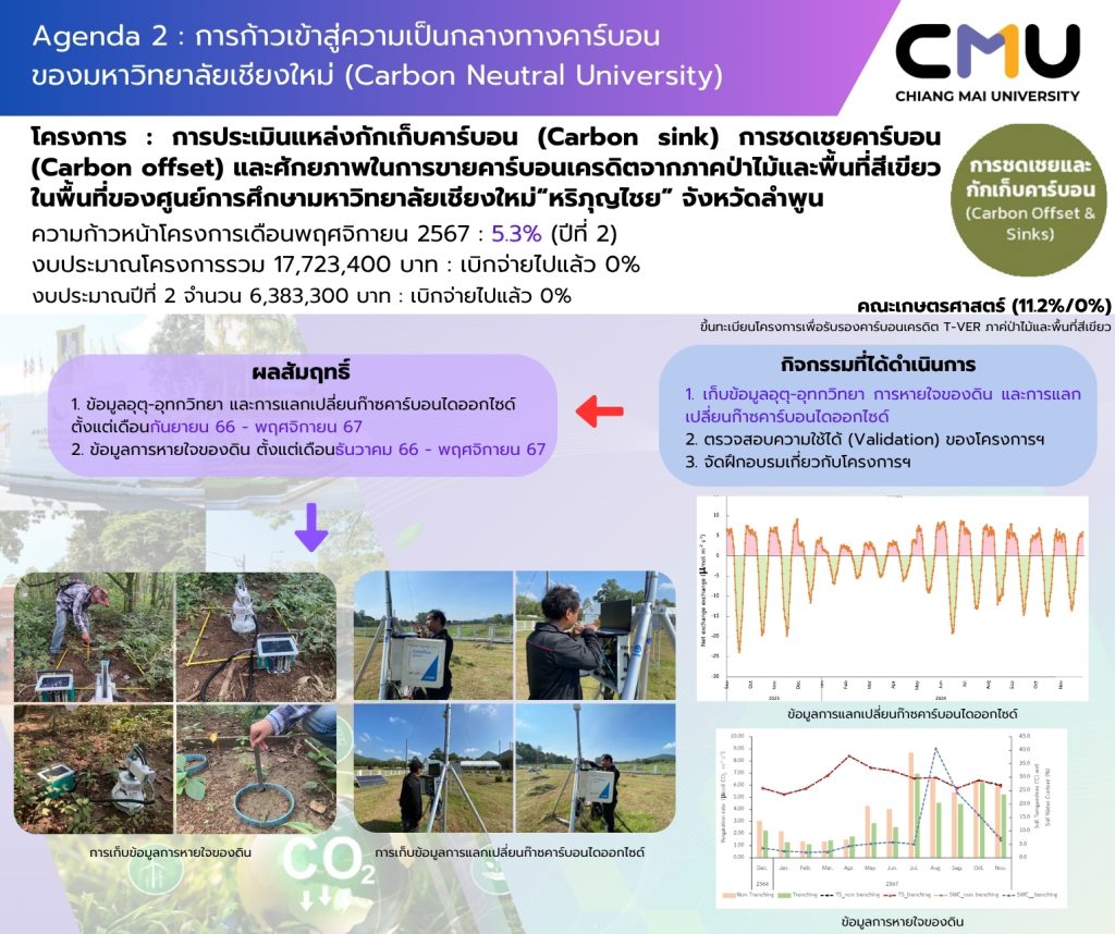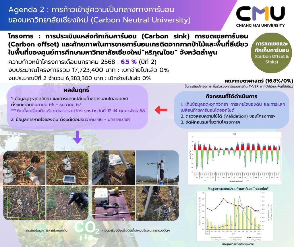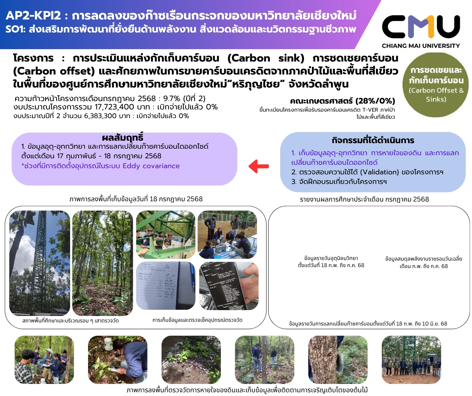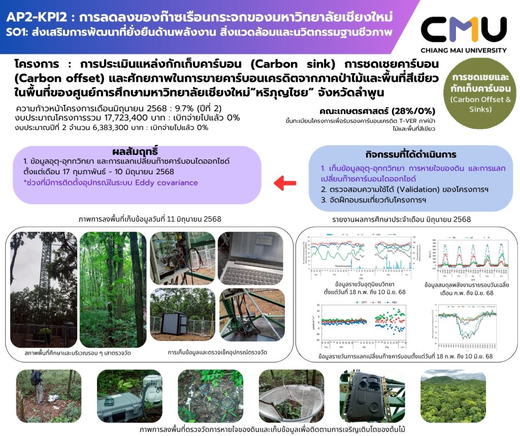 การประเมินแหล่งกักเก็บคาร์บอน (Carbon sink) การชดเชยคาร์บอน (Carbon offset) และศักยภาพในการขายคาร์บอนเครดิตจากภาคป่าไม้และพื้นที่สีเขียวในพื้นที่ของศูนย์การศึกษามหาวิทยาลัยเชียงใหม่“หริภุญไชย” จังหวัดลำพูน ปีที่ 2