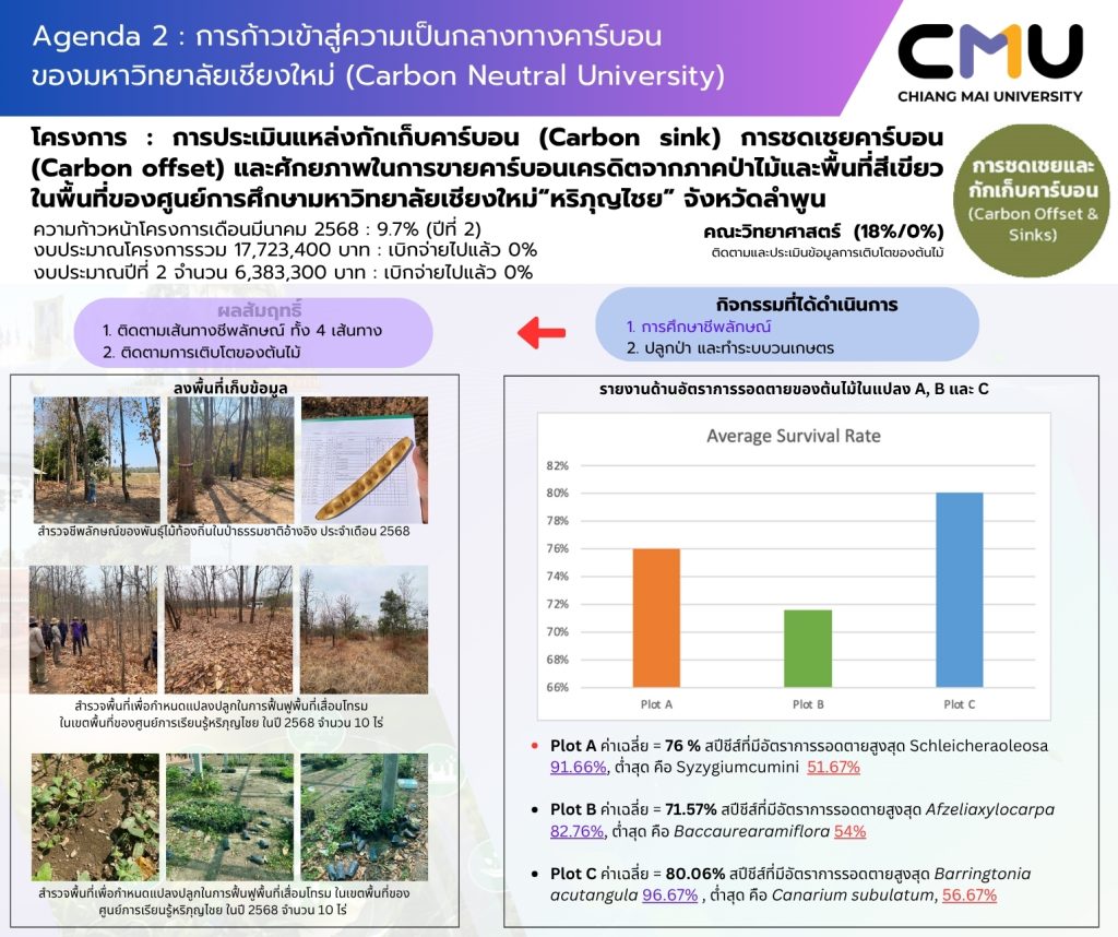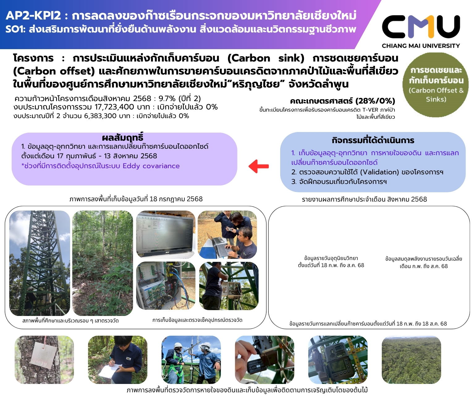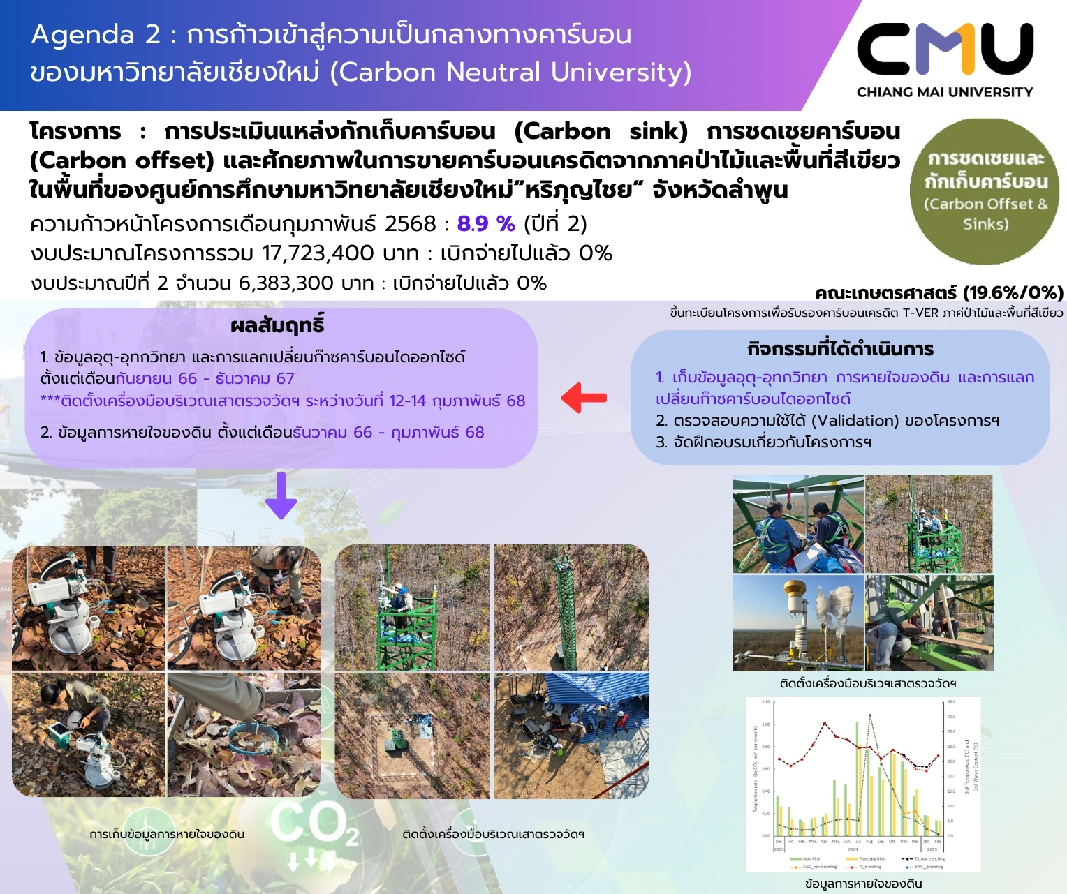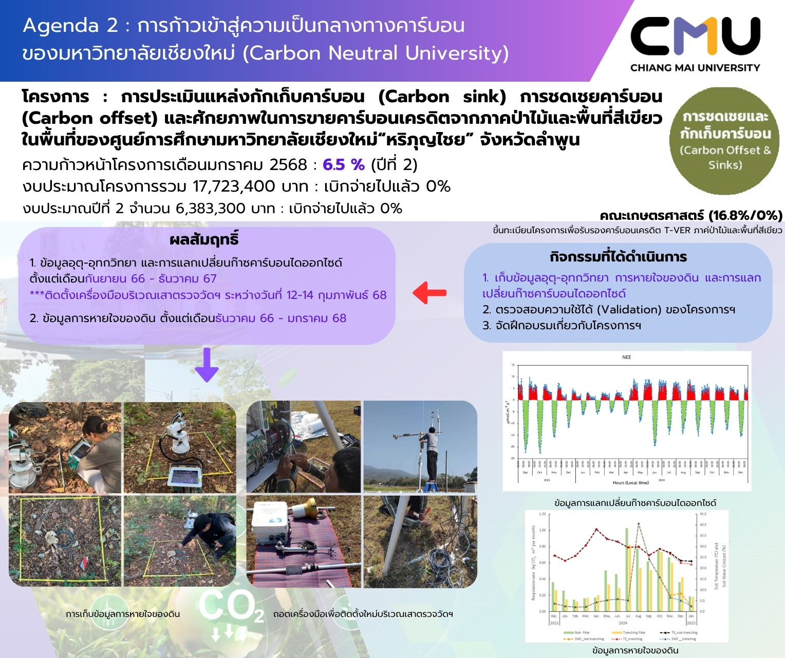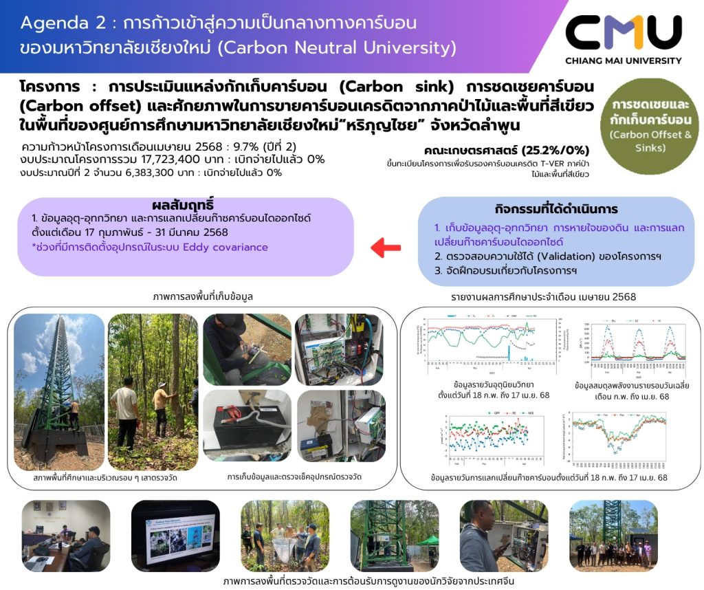 การประเมินแหล่งกักเก็บคาร์บอน (Carbon sink) การชดเชยคาร์บอน (Carbon offset) และศักยภาพในการขายคาร์บอนเครดิตจากภาคป่าไม้และพื้นที่สีเขียวในพื้นที่ของศูนย์การศึกษามหาวิทยาลัยเชียงใหม่“หริภุญไชย” จังหวัดลำพูน ปีที่ 2